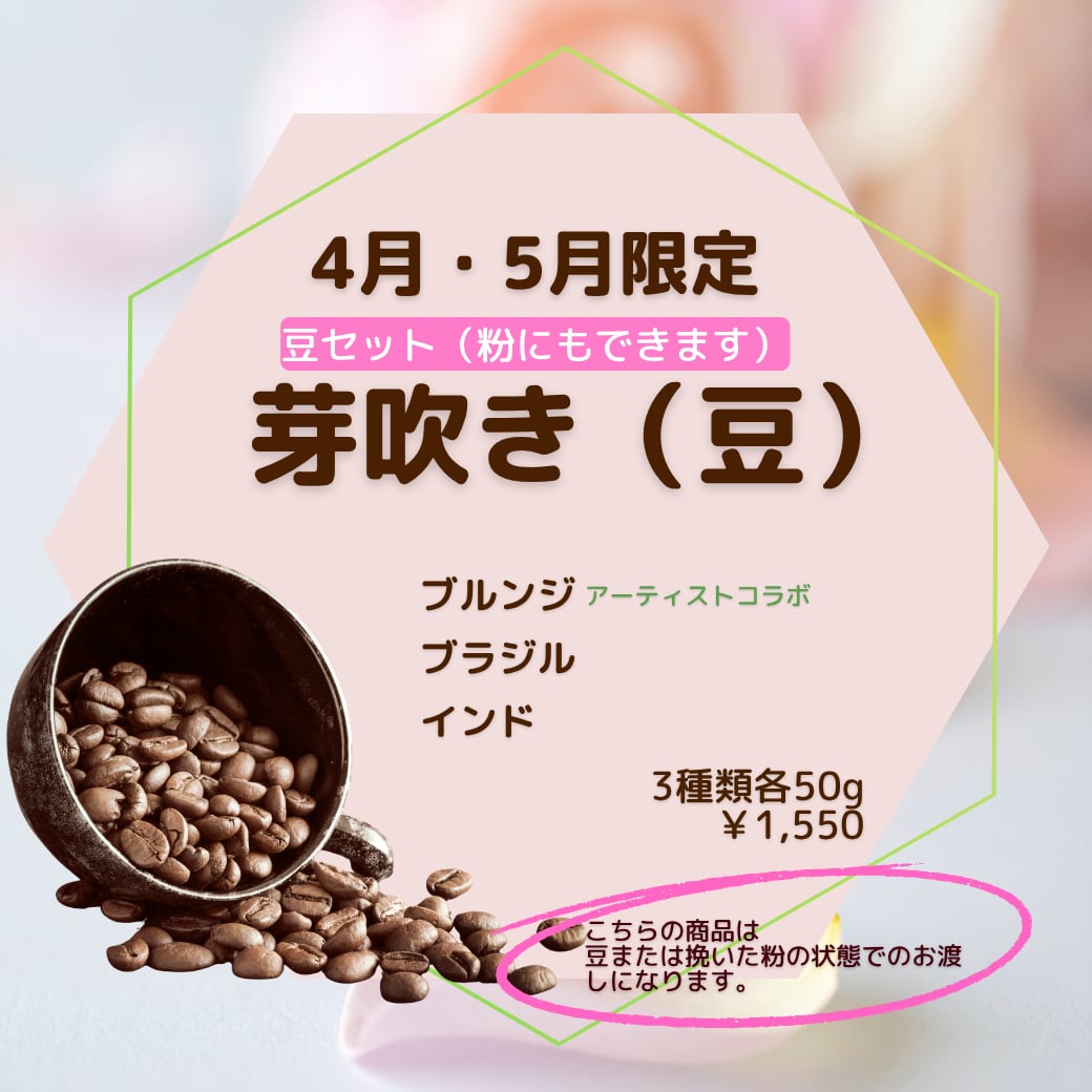 「芽吹き」豆または粉のセット 4月〜5月限定(3種類各50g袋)
